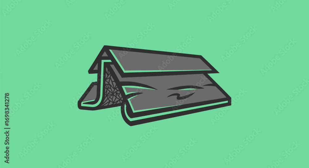 The watermark will not be included on Wall mural.: Abstract illustration of a folded paper or fabric object with a textured surface -