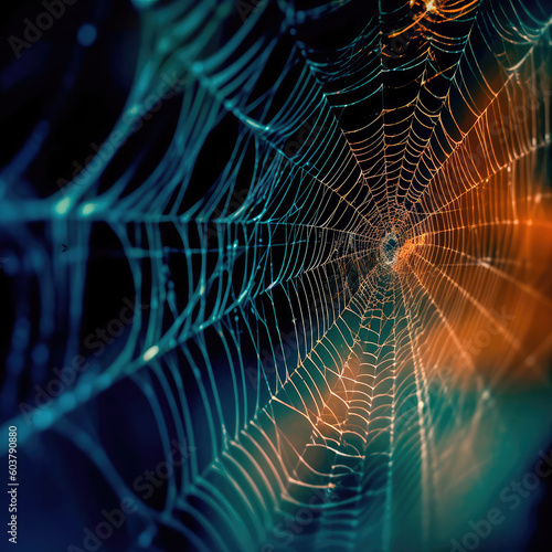 The watermark will not be included on Wall mural.: Abstract illustration of a shiny spider web on a colored background, creating a blurry pattern of li
