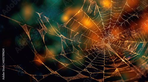 The watermark will not be included on Wall mural.: Abstract illustration of a shiny spider web on a colored background, creating a blurry pattern of li