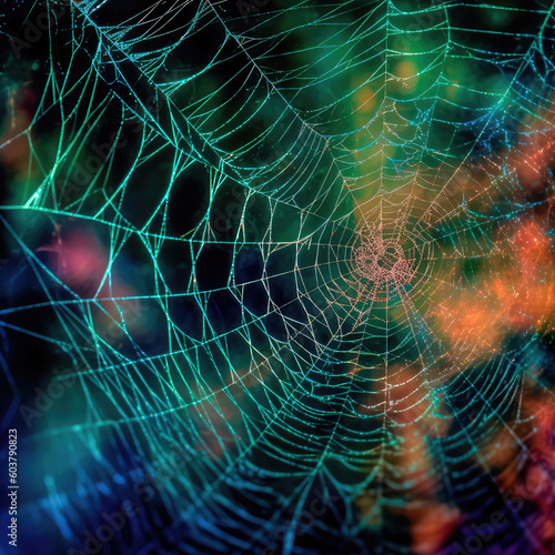 The watermark will not be included on Wall mural.: Abstract illustration of a shiny spider web on a colored background, creating a blurry pattern of li