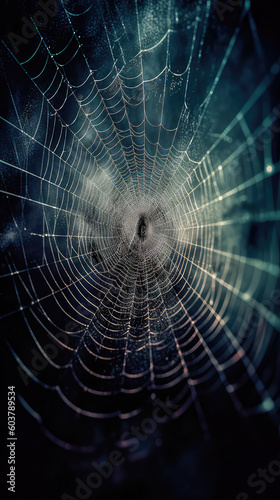 The watermark will not be included on Wall mural.: Abstract illustration of a shiny spider web on a colored background, creating a blurry pattern of li