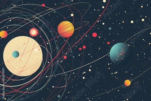 Wall mural abstract illustration of colorful planets and orbits in outer space. modern artistic depiction of th - Wall murals Wall mural abstract illustration of colorful planets and orbits in outer space. modern artistic depiction of th - Wall murals