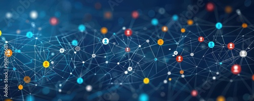 The watermark will not be included on Wall mural.: Abstract illustration of interconnected dots and lines, representing a social network and digital co