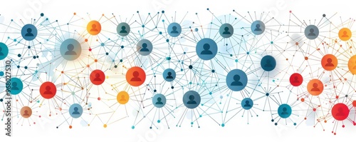 The watermark will not be included on Wall mural.: Abstract illustration of interconnected dots and lines, representing a social network and digital co
