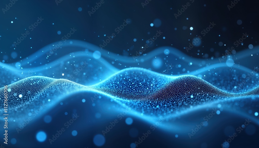 The watermark will not be included on Wall mural.: Abstract illustration shows glowing blue network structure - waves of connected particles form digita