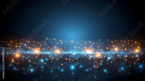 Wall mural abstract image depicting a glowing network interconnected nodes, resembling a constellation against  - Wall murals Wall mural abstract image depicting a glowing network interconnected nodes, resembling a constellation against - Wall murals