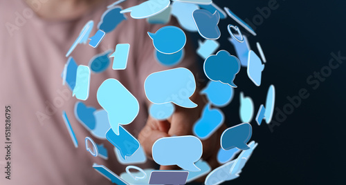 The watermark will not be included on Wall mural.: Abstract image depicting a network of global communication via online chat bubbles -