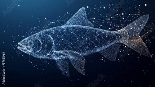 Wall mural : Abstract image of a fish in the form of a starry sky or space, consisting of points, lines, and shap