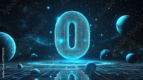 Abstract image of a number zero in the form of a starry sky or space, consisting of points, lines, aWall mural