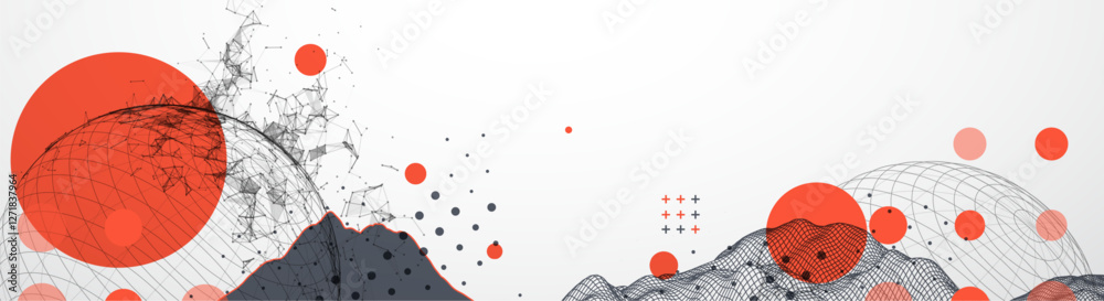 The watermark will not be included on Wall mural.: Abstract image of a wireframe sphere with a plexus effect - science and technology creative theme - ve