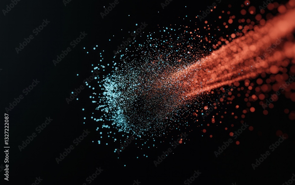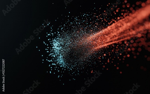 The watermark will not be included on Wall mural.: Abstract image of blue and red particles exploding and spreading across a black background - the part