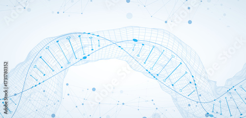 Wall mural abstract image of dna molecule on wireframe wave. scientific vector background. - Wall murals Wall mural abstract image of dna molecule on wireframe wave. scientific vector background. - Wall murals