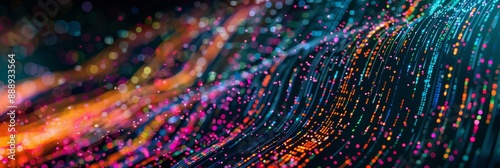 Wall mural abstract image of flowing lines of colorful hexadecimal code on a dark background, symbolizing advan - Wall murals Wall mural abstract image of flowing lines of colorful hexadecimal code on a dark background, symbolizing advan - Wall murals