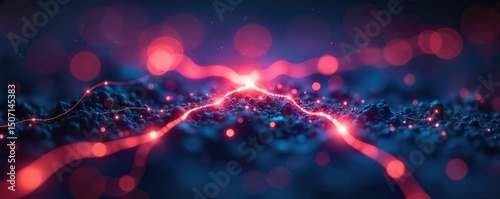The watermark will not be included on Wall mural.: Abstract image of glowing energy streams connecting disparate points, representing a network or comm