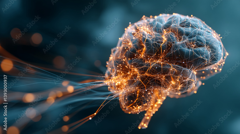 Wall mural abstract image of illuminated brain network, glowing connections symbolizing intelligence, neural ac - Wall murals Wall mural abstract image of illuminated brain network, glowing connections symbolizing intelligence, neural ac - Wall murals