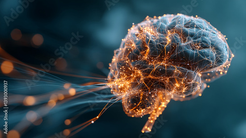 The watermark will not be included on Wall mural.: Abstract image of illuminated brain network, glowing connections symbolizing intelligence, neural ac