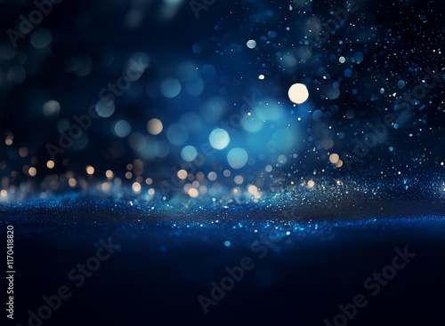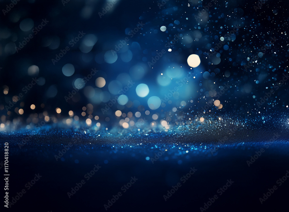 Wall mural : Abstract image of shimmering blue particles and bokeh lights, evoking a sense of depth and ethereal
