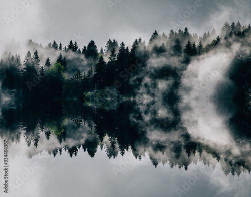 Wall mural : Abstract image with foggy forest that looks like sound-waves -