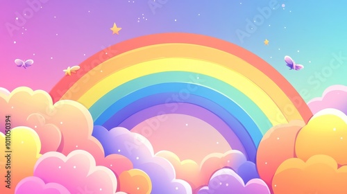 The watermark will not be included on Wall mural.: Abstract kawaii colorful sky rainbow background with soft gradient pastel shades, playful comic grap