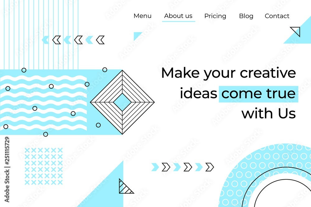 Wall mural abstract landing page. minimal geometry memphis background, trendy business website app. vector deve