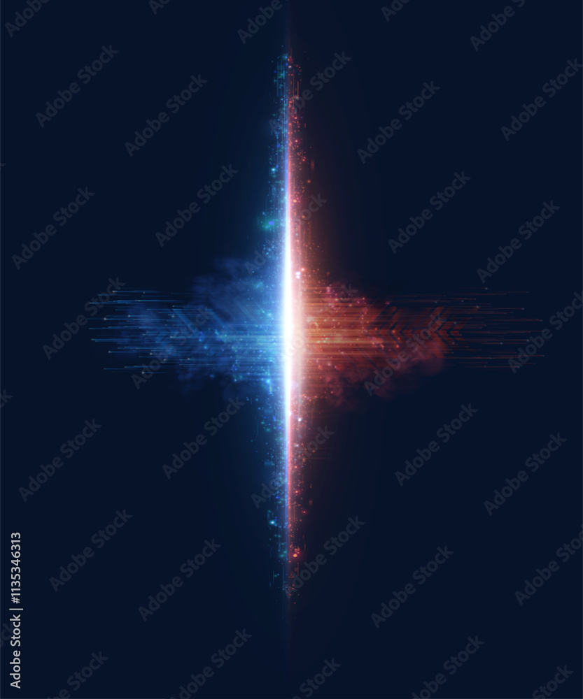 Wall mural abstract light effect of confrontation and collision of light energy with lightning and flashes and