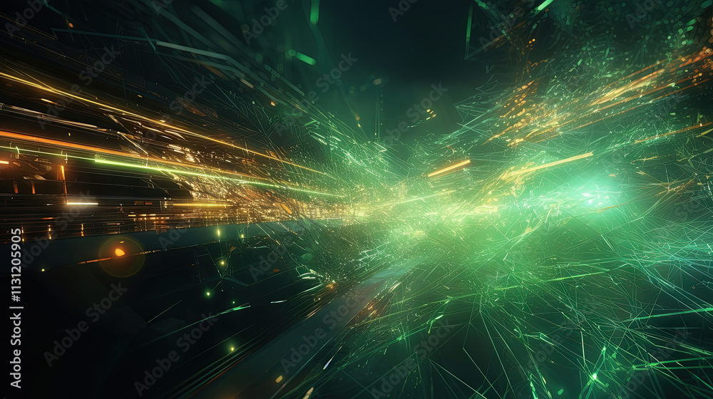 Abstract light streaks in a dynamic digital space with glowing green elementsWall mural