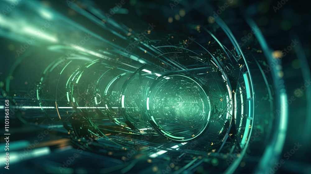 Wall mural : Abstract light streaks in a dynamic digital space with glowing green elements