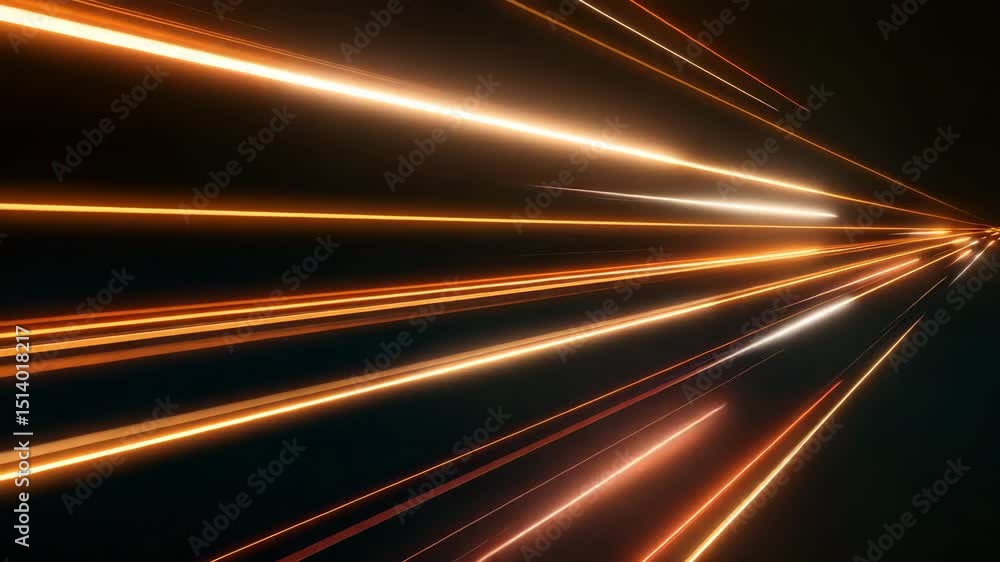 Wall mural abstract light trails in the form of orange and gold stripes, creating the effect of speed and movem - Wall murals Wall mural abstract light trails in the form of orange and gold stripes, creating the effect of speed and movem - Wall murals