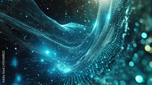 Wall mural : Abstract light wave patterns with blue particles and depth effects