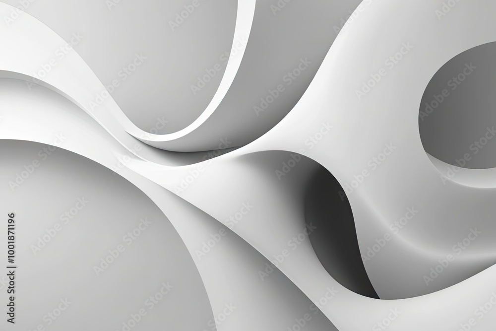 Wall mural : Abstract light white background design with modern wavy lines and smooth texture