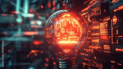 The watermark will not be included on Wall mural.: Abstract lightbulb with glowing digital business interface - solution and antivirus concept - 3d rende