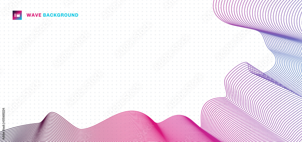 The watermark will not be included on Wall mural.: Abstract line art design pattern on ripple wave curve vibrant gradient color on white background