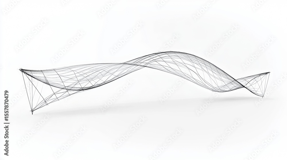 The watermark will not be included on Wall mural.: Abstract line sculpture showcasing dynamic curves and geometric forms in a minimalist setting