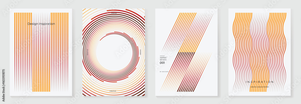 The watermark will not be included on Wall mural.: Abstract line wave gradient poster on white background vector set - cover template with red and orang