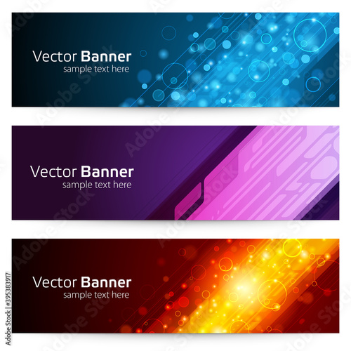 Wall mural abstract linear banner with geometric bubbles vector template. blue circle with bright flashes of li - Wall murals Wall mural abstract linear banner with geometric bubbles vector template. blue circle with bright flashes of li - Wall murals