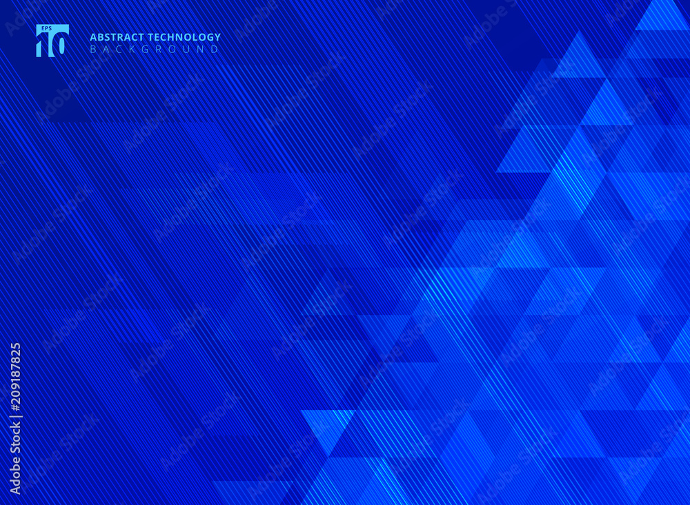 Wall mural abstract lines and triangles pattern technology on blue gradients background.