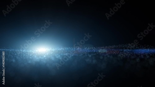 Wall mural abstract loop dotted waves travel with blue glowing spot light and lens flare animation background. - Wall murals Wall mural abstract loop dotted waves travel with blue glowing spot light and lens flare animation background. - Wall murals