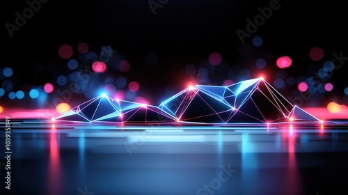 The watermark will not be included on Wall mural.: Abstract low-poly technology background with sharp edges glowing against a dark backdrop -
