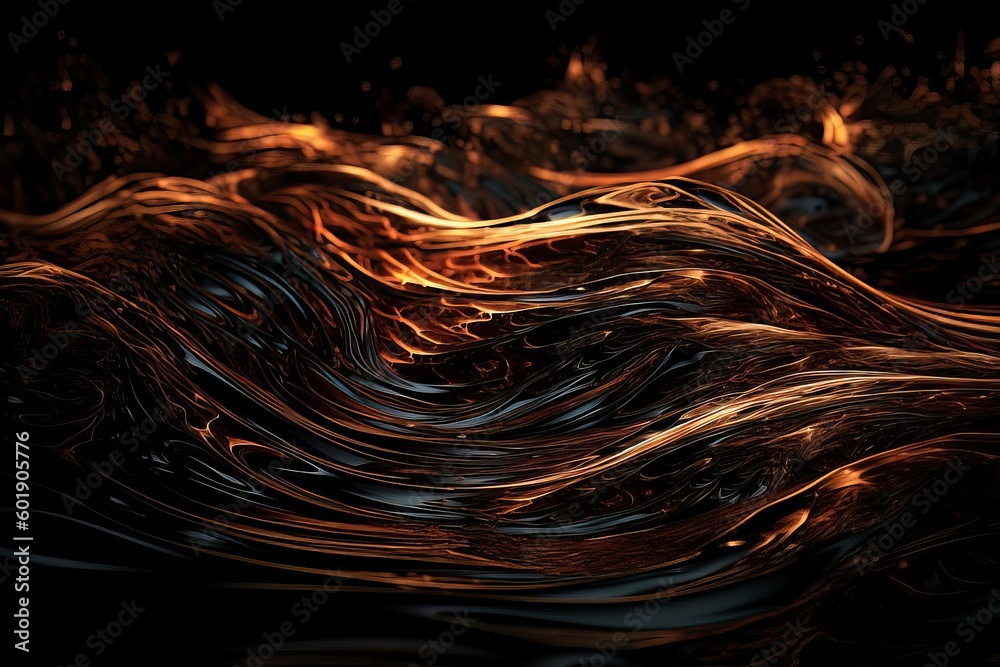 The watermark will not be included on Wall mural.: Abstract luminous energy flow wave isolated on black background made with generative ai