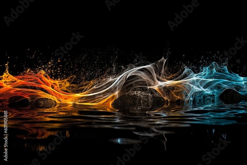 The watermark will not be included on Wall mural.: Abstract luminous energy flow wave isolated on black background made with generative ai