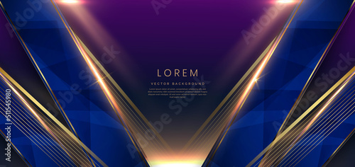 Wall mural abstract luxury golden lines diagonal overlapping on dark blue background with lighting effect. temp