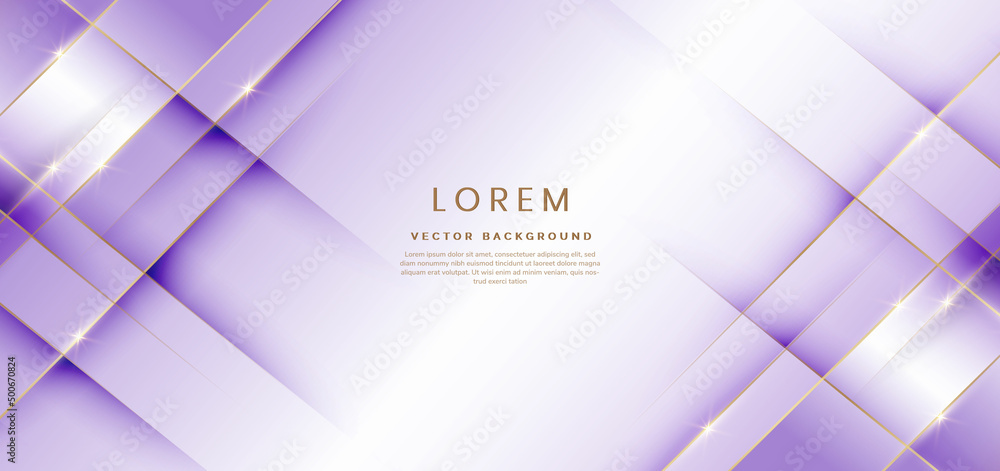 The watermark will not be included on Wall mural.: Abstract luxury white and soft purple elegant geometric diagonal overlay layer background with golde
