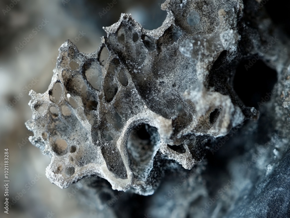 The watermark will not be included on Wall mural.: Abstract macro image of a delicate and complex structure featuring intertwined lines, holes, and cry