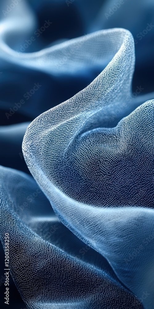 Wall mural : Abstract macro photograph of a blue textured fabric - its delicate folds and net-like structure creat