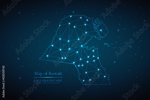 Wall mural : Abstract map of kuwait geometric mesh polygonal network line, structure and point scales on dark bac