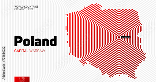 The watermark will not be included on Wall mural.: Abstract map of poland with red hexagon lines