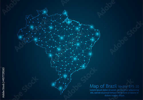 Wall mural : Abstract mash line and point scales on dark background with map of brazil - 3d mesh polygonal network