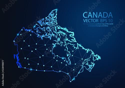 Wall mural : Abstract mash line and point scales on dark background with map of canada - wire frame 3d mesh polygo