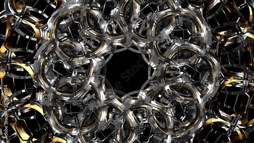 Wall mural abstract metal circle twisted shape seamless loop animation, abstract engine spiral.