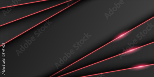 Wall mural abstract metallic black frame background, triangular overlap layer with bright red light line, diago